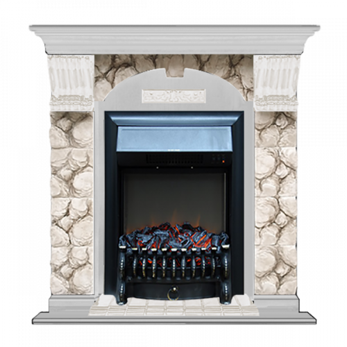 Каминокомплект Glenrich Арочный Карелия (беленый дуб)+Fobos Black
