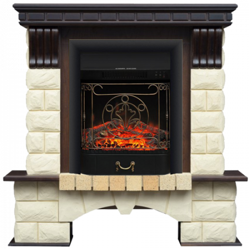 Каминокомплект Alex Bauman Tango Premium Mini (грецкий орех)+Majestic Black